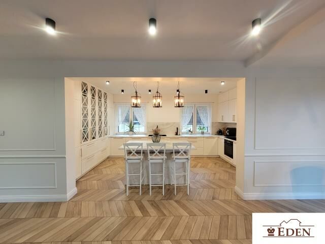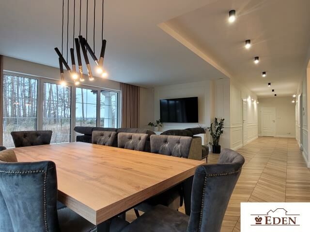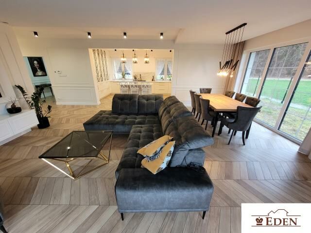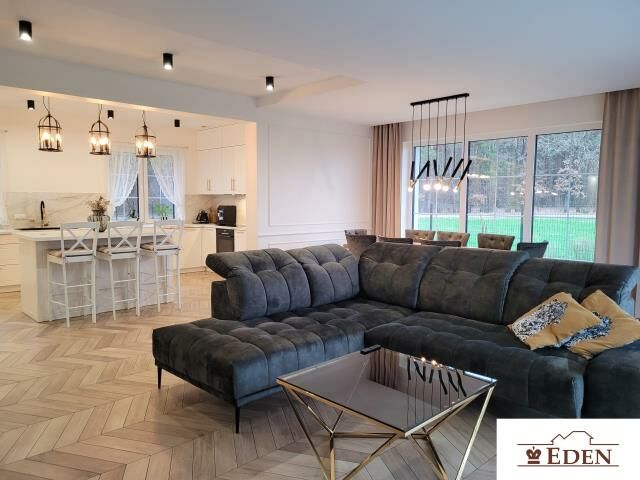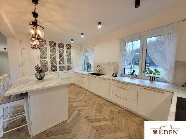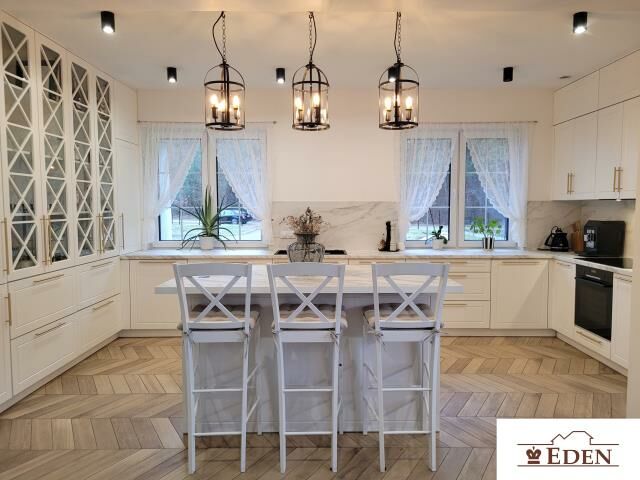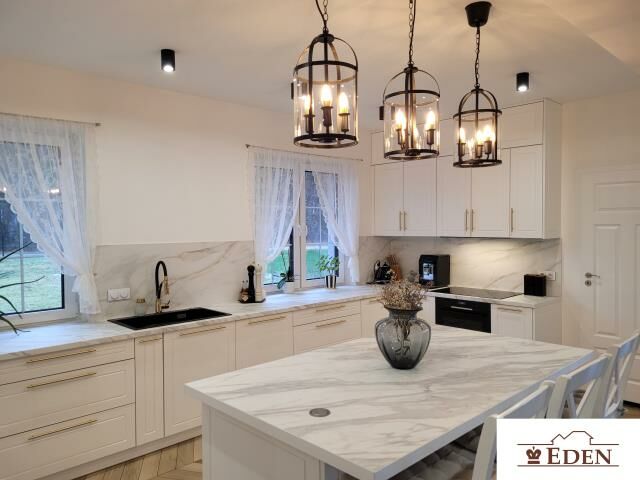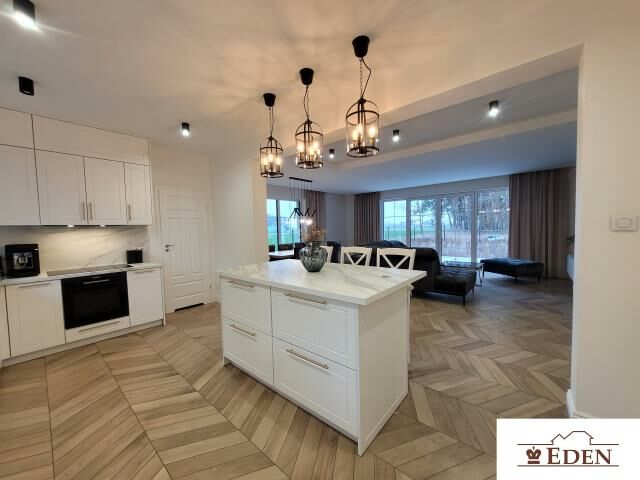 Energooszczędne oświetlenie wewnątrz i na zewnątrz budynku. Stylowa kuchnia umeblowana pod wymiar i w pełni wyposażona w sprzęt AGD (duża płyta indukcyjna, piekarnik, okap, zmywarka, lodówka w zabudowie).